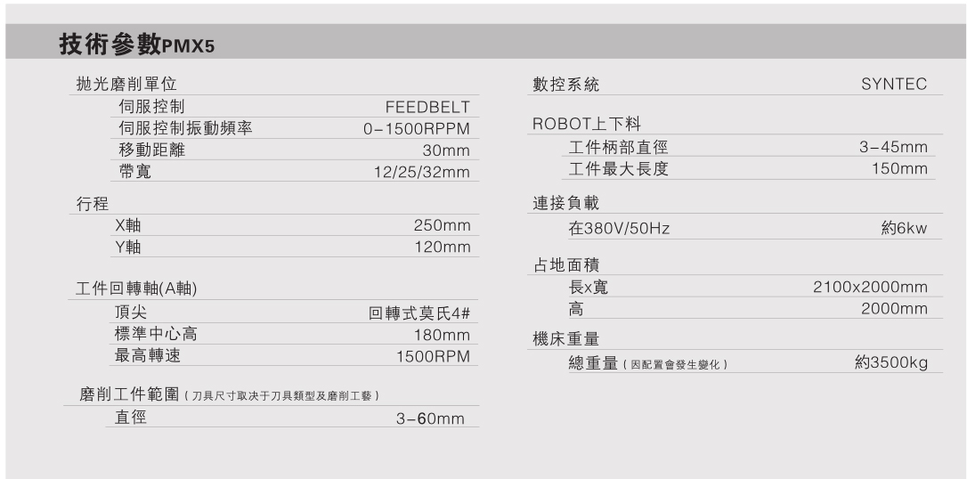 PMX5全自動(dòng)數(shù)控外圓拋光磨床引進(jìn)德國(guó)磨削技術(shù)和磨床制造理念設(shè)計(jì)生產(chǎn),適用軸類(lèi)零件等高精度產(chǎn)品的外圓全自動(dòng)精密拋光磨削。